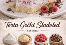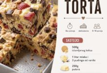 Sastojci: • 500 g šlaga u prahu • 300 ml hladnog mlijeka • 200 g mljevenog keksa • 150-200 g…