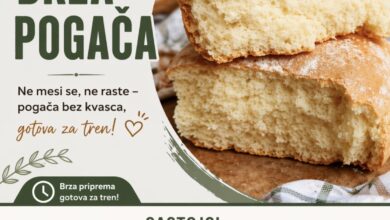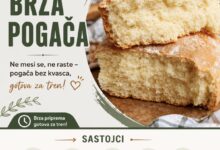 Sastojci: * 400–450 g brašna * 1 kašičica sode bikarbone ili 1 prašak za pecivo * 3 kašike ulja *…