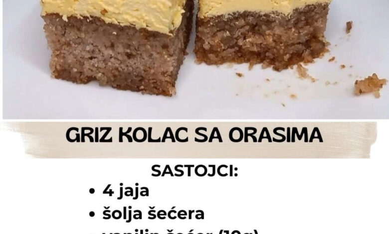 ✅ Sočan griz kolač sa orasima i savršenom kremom – recept koji svi traže!