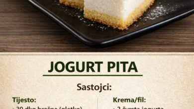 Kolač ostaviti u frižideru najmanje 3–4 sata, idealno preko noći.