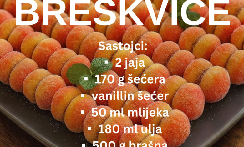 Mnogi od nas s nostalgijom se sjećaju breskvica. Jeste li ih ikada probali napraviti? Ako niste, evo prilike – donosimo vam recept za ove prekrasne prhke i mirisne kolačiće koji će vas vratiti u sretne dane djetinjstva!