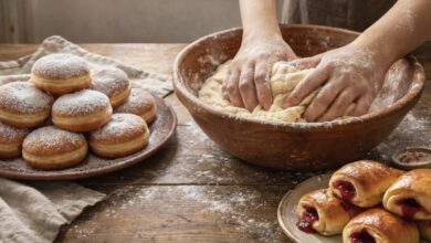 Savršena kombinacija mekanih palačinaka, kreme od lješnjaka i komadića Kinder Buena. Brz desert koji izgleda kao iz slastičarne, a pravi se za nekoliko minuta. Idealan kad vam se jede nešto slatko i čokoladno. 🍫🥞