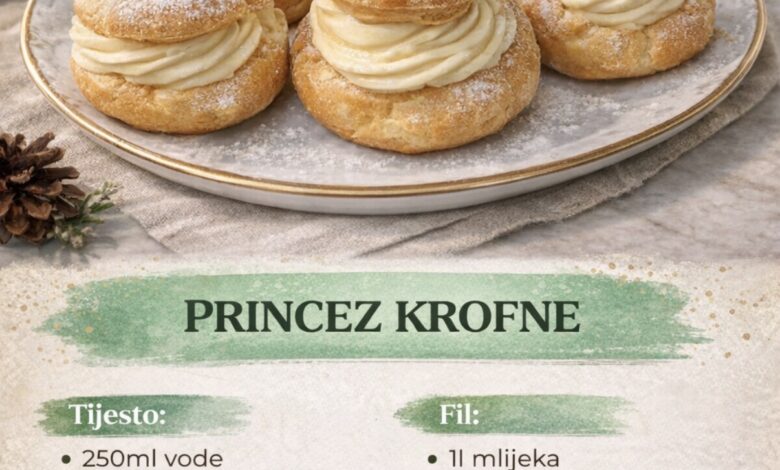 Sa sočnim i mekanim tijestom, bogatim kremastim filom i posipane šećerom u prahu, ove krofne su pravo uživanje u svakom zalogaju. Brzo se pripremaju, a rezultat je uvek savršen – idealne su za svaku priliku, od porodičnih okupljanja do slatkih užina. Pratite ovaj jednostavan recept i uživajte u neodoljivom okusu princez krofni!